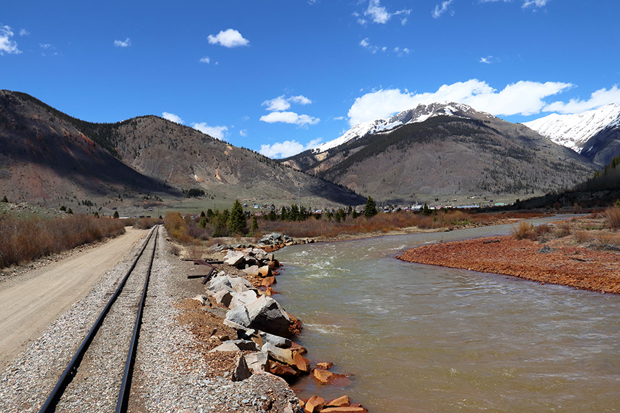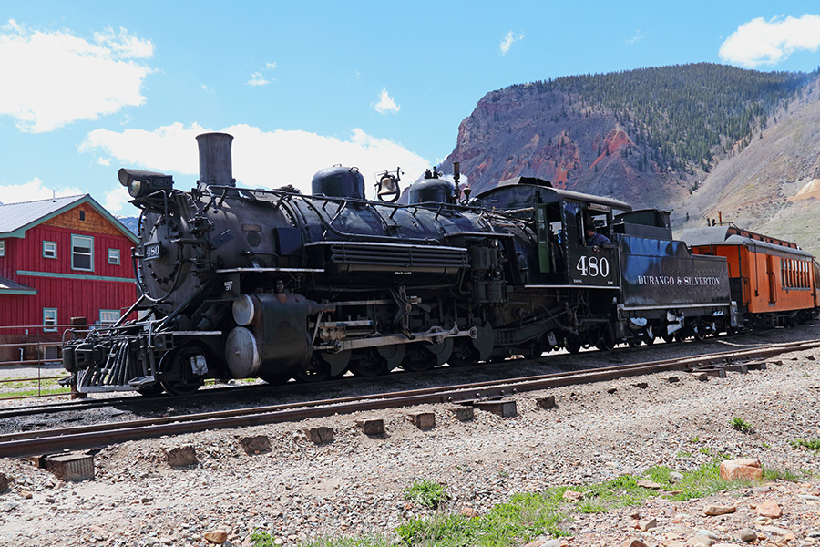 This railway is a 3ft narrow-gauge operating on 45 miles of track between Durango and Silverton. It was wonderful to ride a steam train on such a long distance. The views are incredible. The track follows a main river going up through canyons, passing large rocks, climbing through tall evergreen forests up to the mountains. The trail starts at an altitude of 6,512 feet above sea level and when it finally arrives in Silverton, an old mining town, it has travelled for 3 hours and reached an elevation of 11,240 feet.